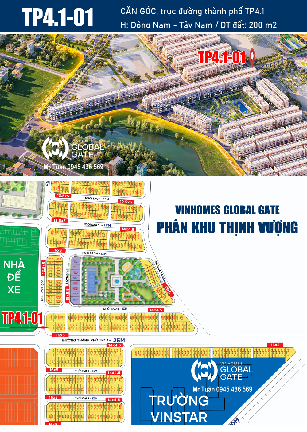 TP4.1-01 SHOPHOUSE GÓC 200m2 ĐƯỜNG THÀNH PHỐ TP4.1