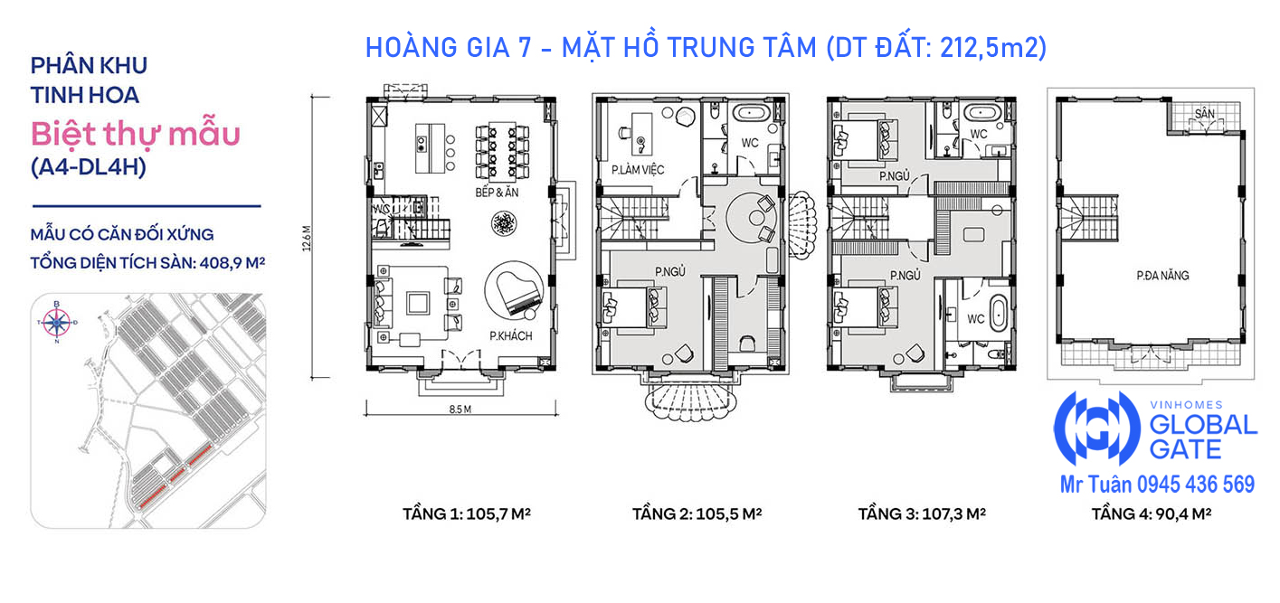 Sàn XD: 105,7/409 m2 (4 tầng)