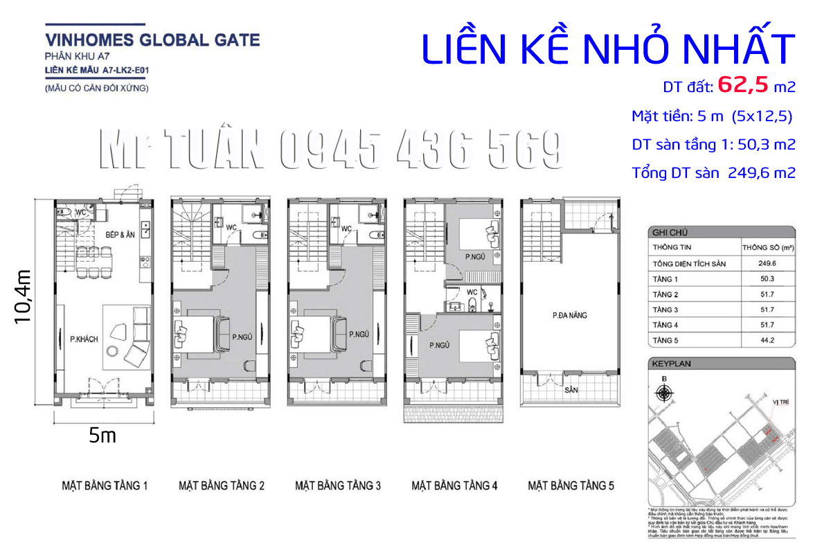 Diện tích sàn XD: 245 m2 (5 tầng)