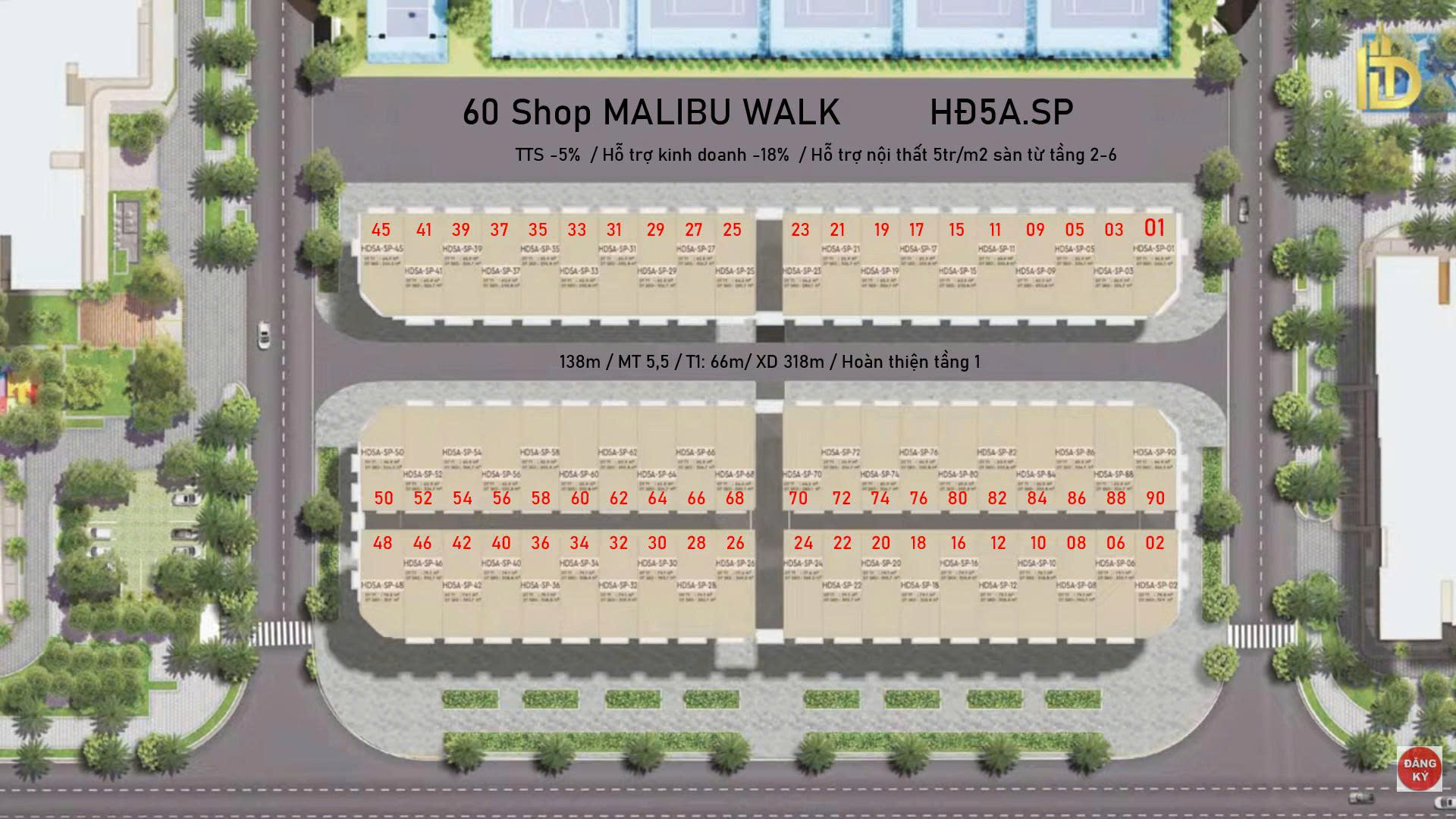 - Sở hữu khu đỗ xe rộng rãi riêng biệt tạo điều kiện thuận lợi cho các chủ cửa hàng kinh doanh.