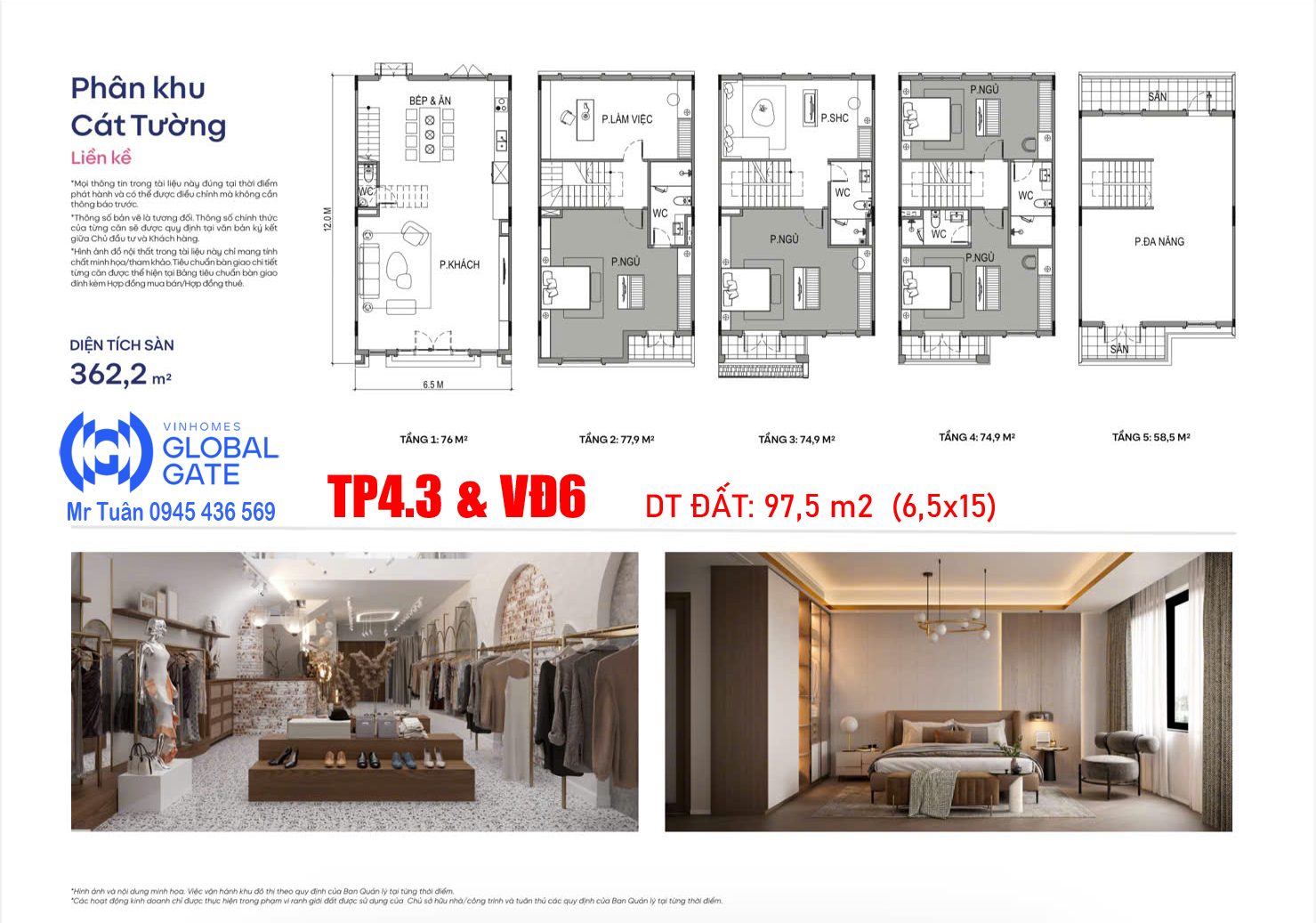 Diện tích sàn XD: 362 m2 (5 tầng)
