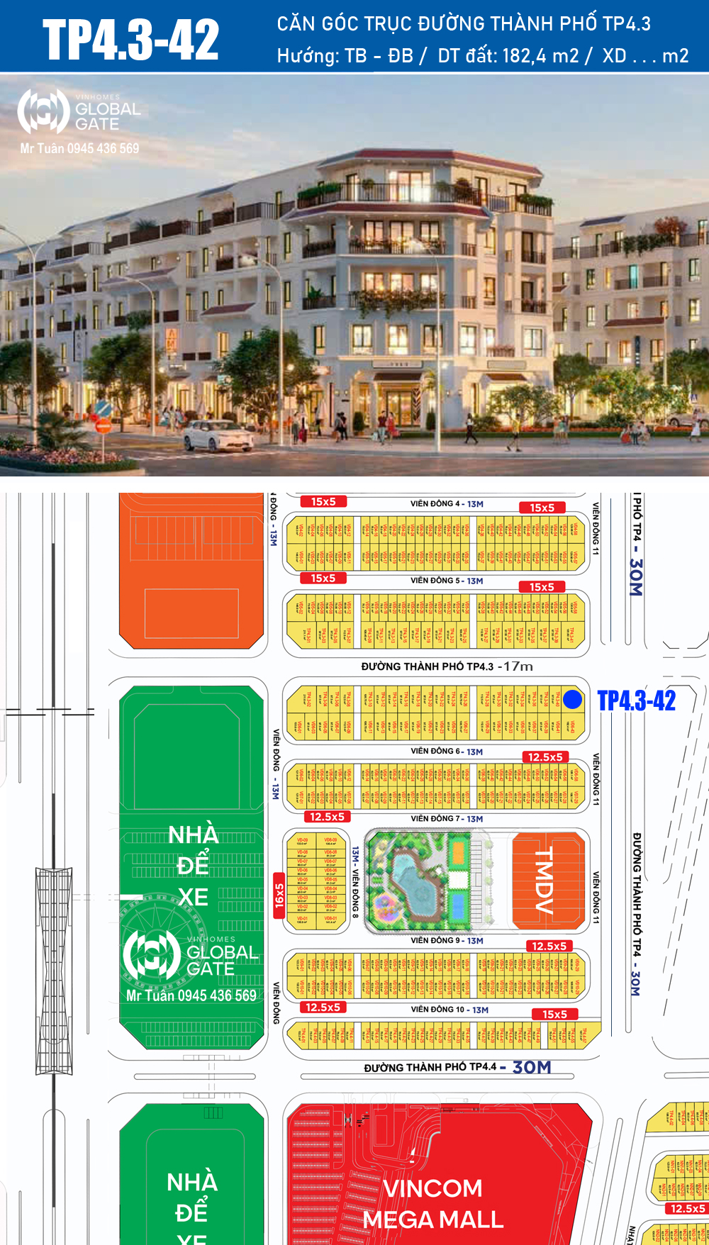 TP4.3-42 SHOPHOUSE GÓC, ĐƯỜNG THÀNH PHỐ, VINHOMES GLOBAL GATE