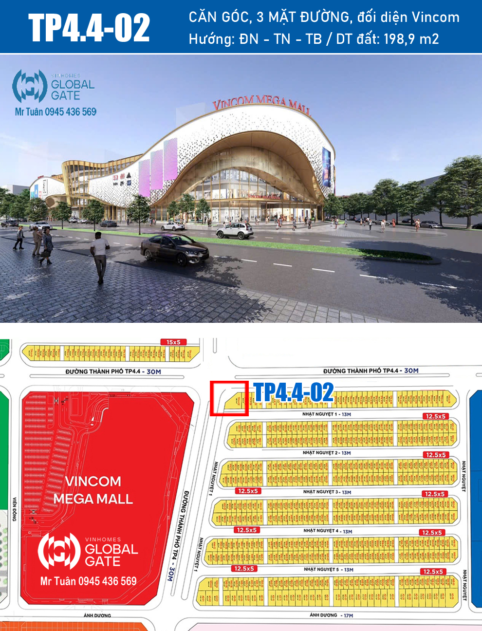 TP4.4-02 SHOPHOUSE GÓC, 3 MẶT ĐƯỜNG, ĐỐI DIỆN VINCOM