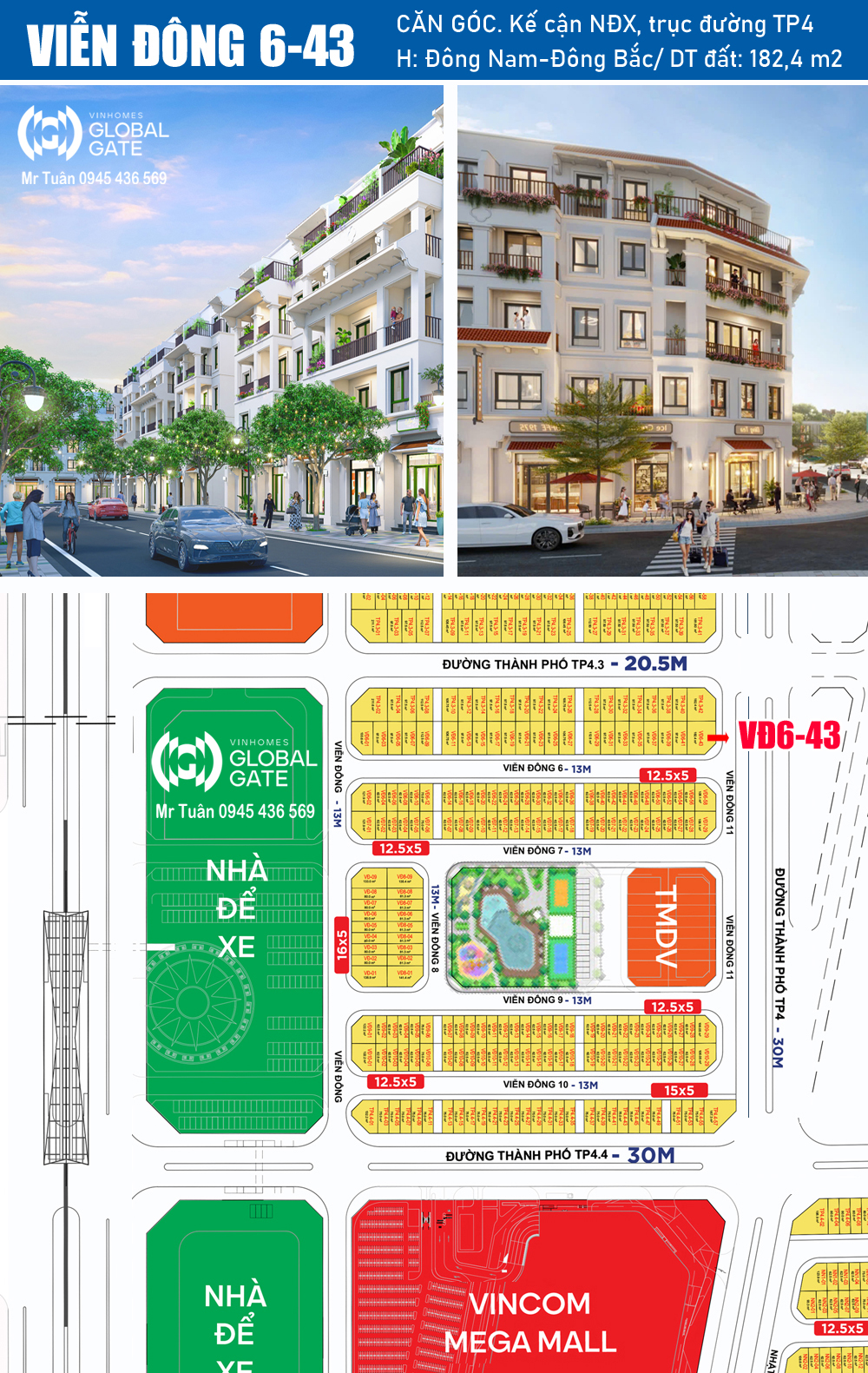 LIỀN KỀ GÓC 182,4 m2 | VIỄN ĐÔNG 6-43