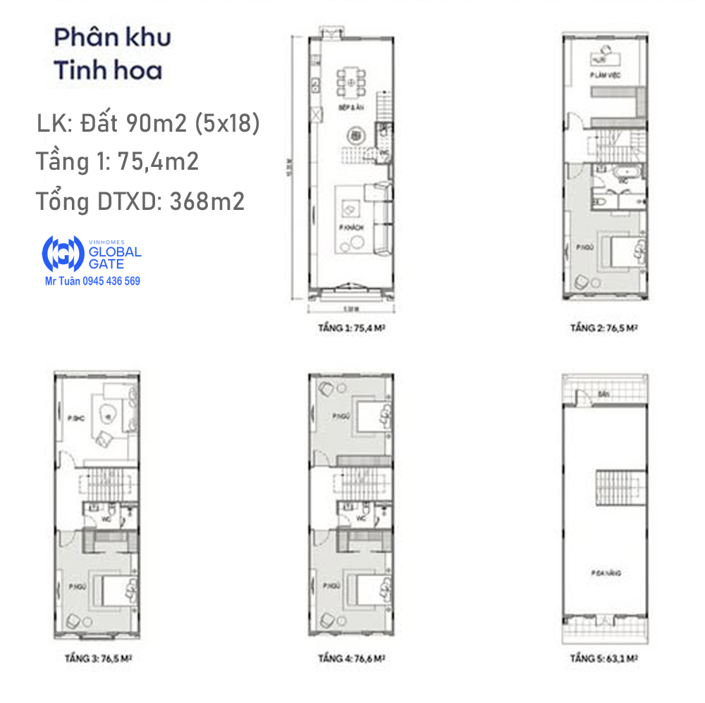 Nếu như năm 2017 Tôi bán liền kề Harmony /Đất 90m2/sàn XD 210m2 thì nay bán liền kề Global Gate cũng 90m2/ nhưng sàn XD 368m2. (gấp 1,75 lần)