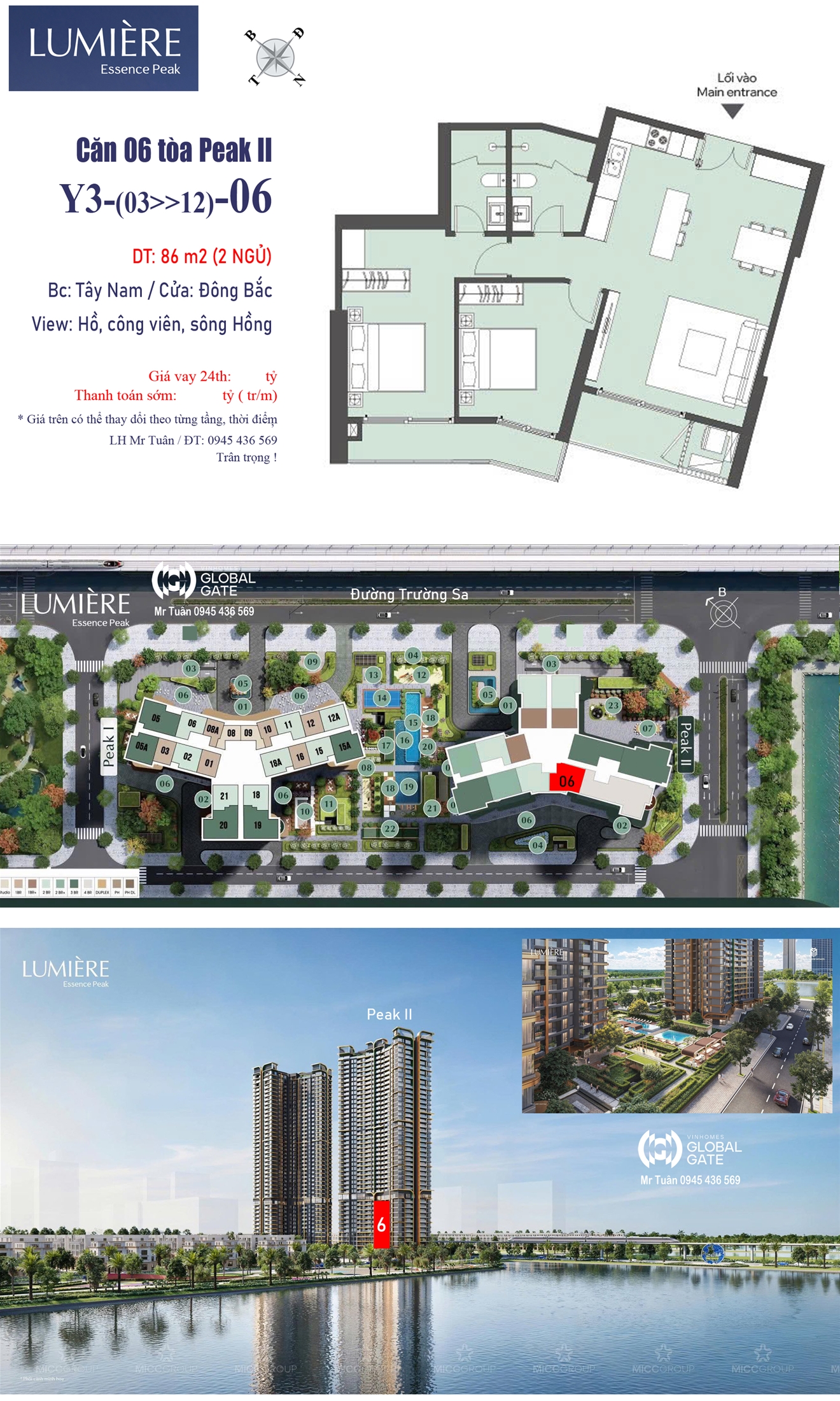 Căn 06 tòa Y3 LUMIÈRE Essence Peak II