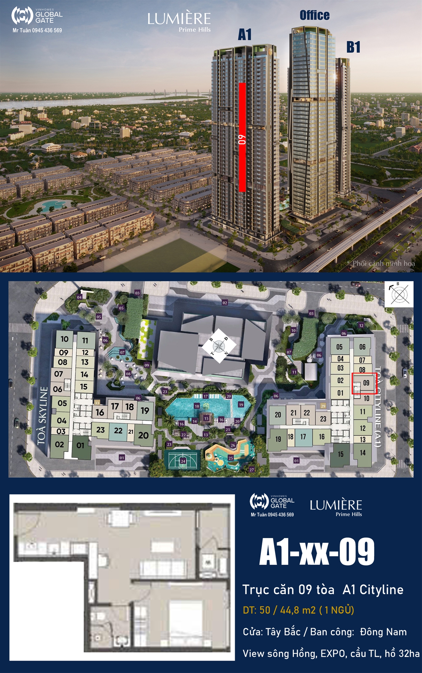 CĂN 09 TÒA A1 Cityline (1 NGỦ, VIEW EXPO, CẦU TỨ LIÊN) LUMIÈRE Prime Hills