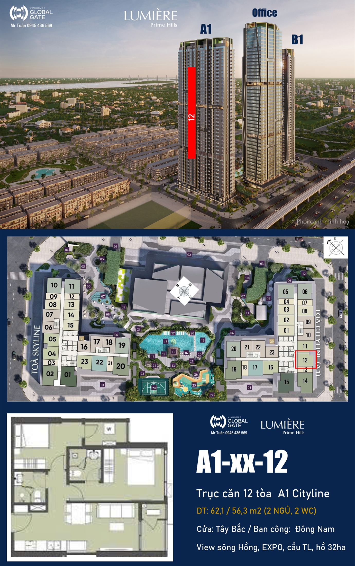 TRỤC CĂN 12 TÒA A1 (2 NGỦ, VIEW EXPO) LUMIÈRE Prime Hills CỔ LOA
