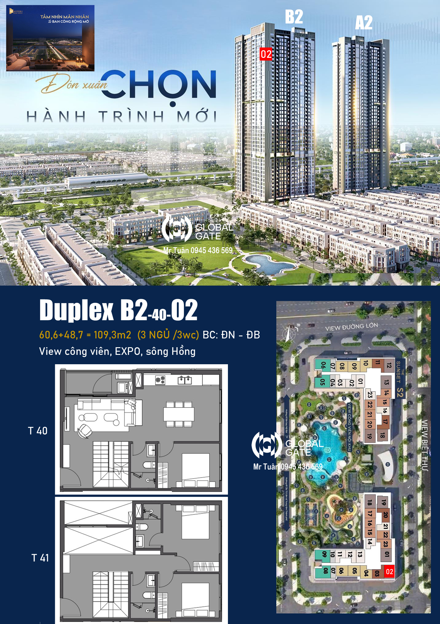 B2-40-02 DUPLEX TÒA SUNRISE - Masteri Grand Avenue Cổ Loa