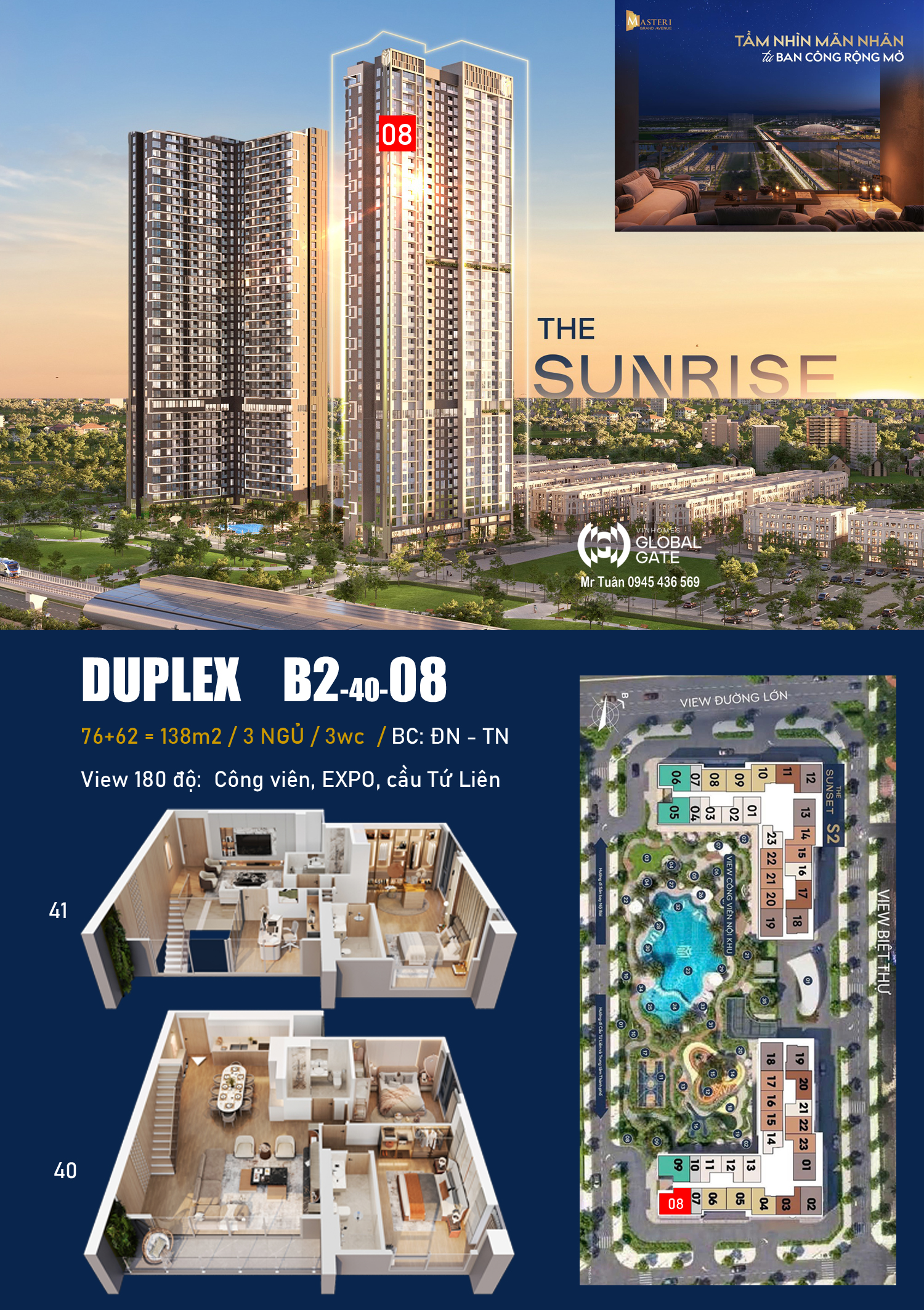 B2-40-08 DUPLEX TÒA SUNRISE - Masteri Grand Avenue Cổ Loa