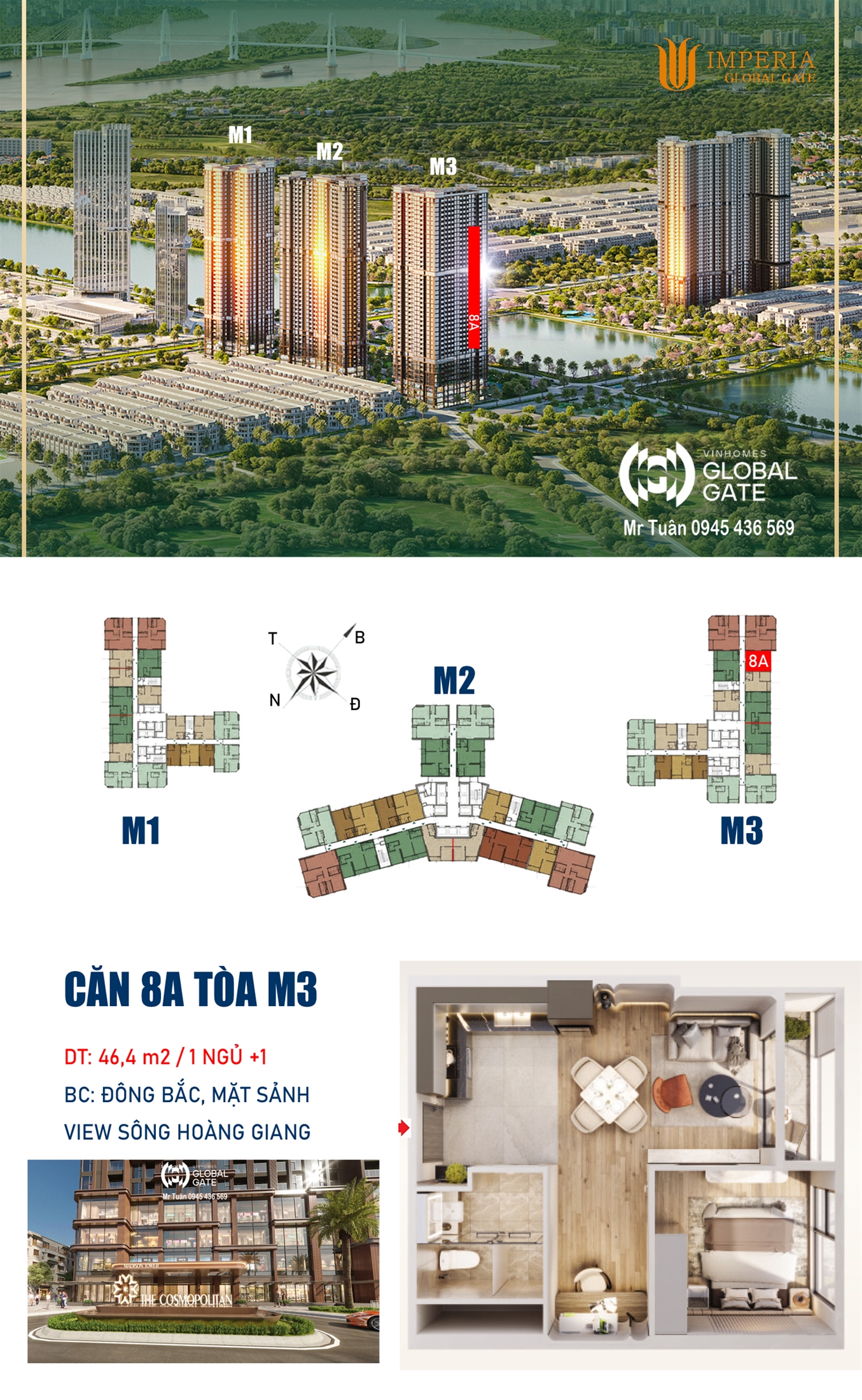 LAYOUT CĂN 8A TÒA M3 (MẶT SẢNH) COSMOPOLITAN VINHOMES GLOBAL GATE