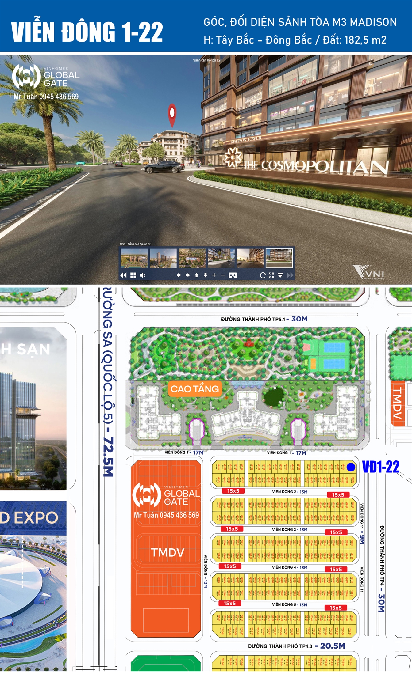 VIỄN ĐÔNG 1-22 CĂN GÓC, ĐỐI DIỆN SẢNH TÒA M3 MADISON - VINHOMES GLOBAL GATE